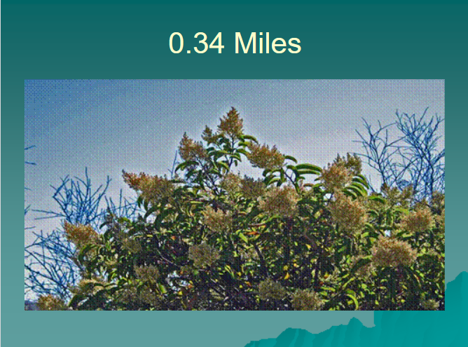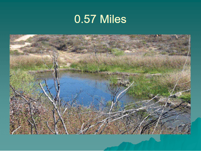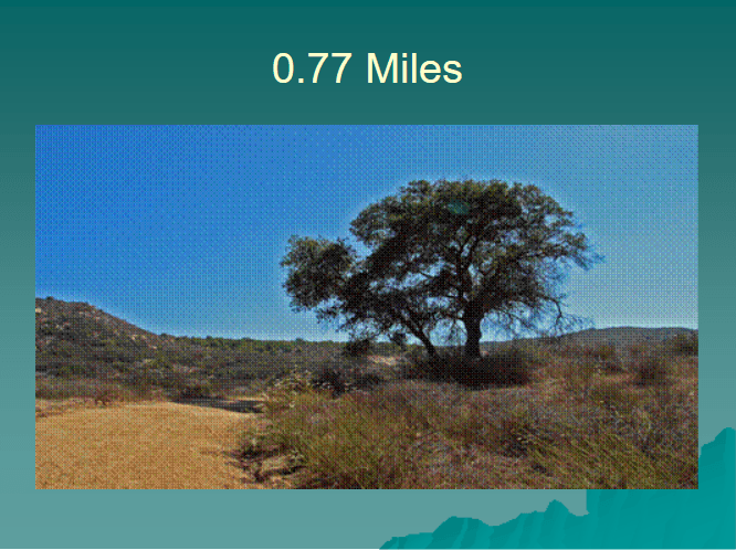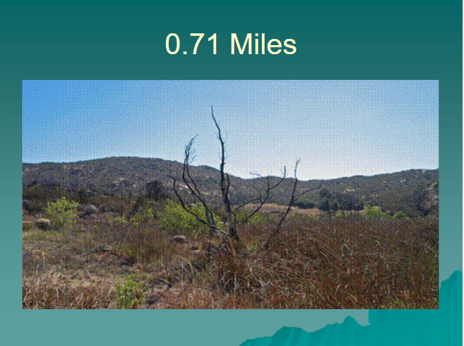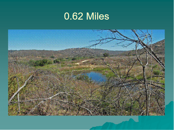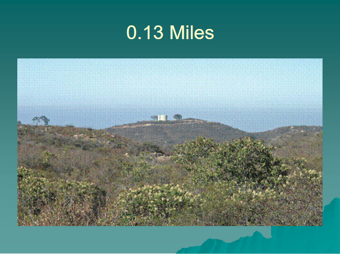 At 0.37 miles by looking left one gets a view of Escondido. The photo shown here was taken on a hazy day.