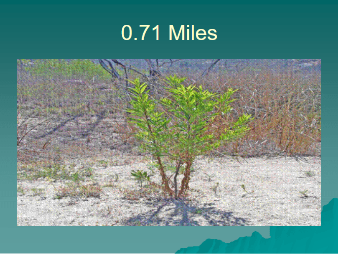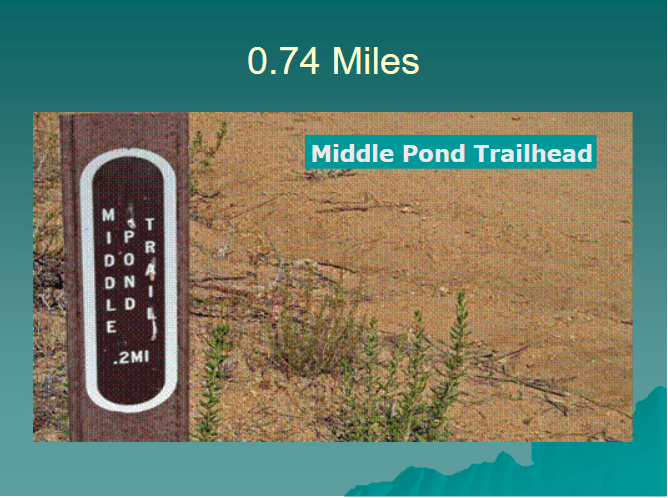 Just beyond the Middle Pond trailhead is a large tree along the right side of the trail. It is 0.35 miles from this tree to the end of the trail.