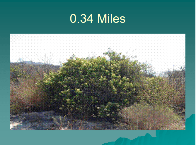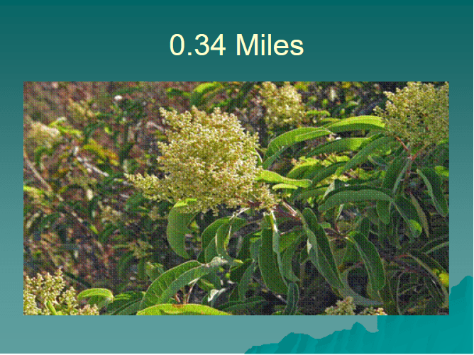 The East Ridge Trail makes a slight incline as it leaves its junction with the Coyote Run Trail. The slides depict one of the flowering bushes along the trail.